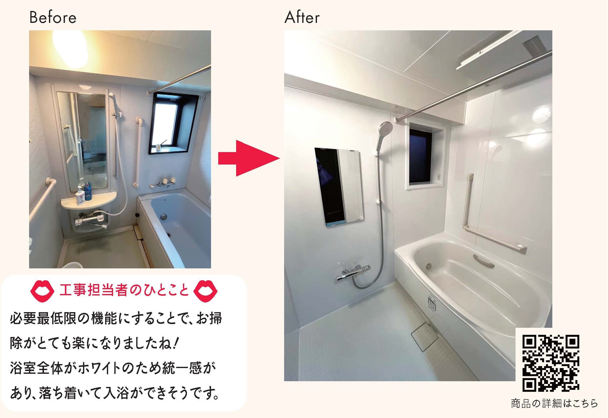 清掃性と省エネ性を追求したユニットバスへと変わり、窓枠もあわせて施工しました!