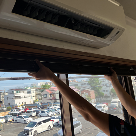 この作業では、窓枠や壁の状況を確認したうえで、水平を取りながら丁寧に取付けを行い、開閉や可動のチェックまで実施します。