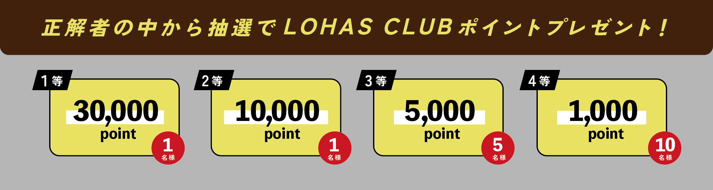 合計17名の方に最大3万ポイントのLOHAS CLUBポイントプレゼントとなります。