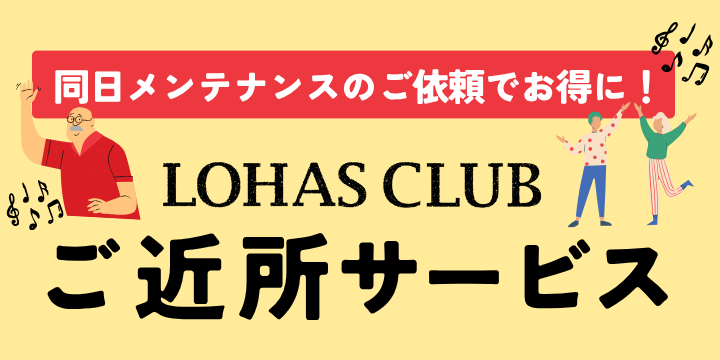 ご近所にお住まいの会員様同士で同日にメンテナンスサービスをご依頼いただくと、作業が1日で完了する場合に限り、1世帯当たりの出張費が半額でご利用いただけます。 例)A様・B様が同じ日にメンテナンスサービスを依頼すると、出張費は1世帯2,200円となります。 ※半径50m圏内のご近所様が対象です。 ※3世帯以上の場合も1世帯2,200円の負担となるためご注意ください。 ※本サービスは予告なく変更または、終了となる場合がございます。(2025年10月発表)