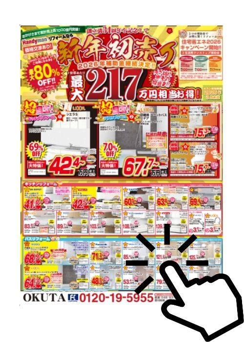 【PICK UP】 ■水廻り最大80%OFF! ■最大217万円相当お得!補助金! ■売り切れ御免の超目玉商品多数!