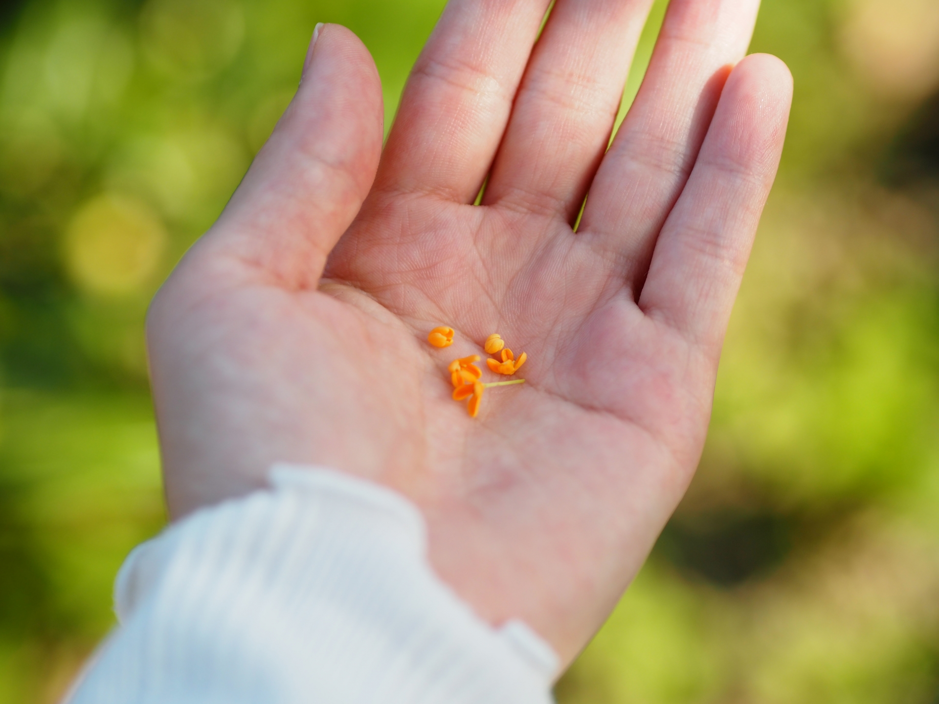 1:金木犀の花を集めます。(香りが強く豊かなものがいい場合は、咲き始めの蕾を)
