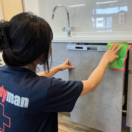 食洗機の外側を丁寧に拭き上げ、見た目も清潔に整えます。日常では気づきにくい部分もクリーニングすることで、衛生的なキッチン環境を保ちます。